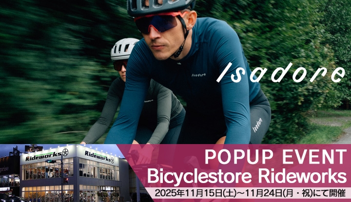 一般車からスポーツ自転車まで幅広いラインナップでお客様のニーズに応えるBicyclestore Rideworks(バイシクルストア ライドワークス)。そんなRideworksで、「Isadore(イザドア)」のPOPUPストア開催が決定しました。