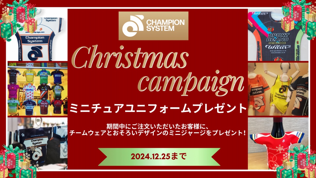 チャンピオンシステムがオーダーウェアを注文するとミニチュアユニフォームがもらえるクリスマスキャンペーンを開催している。期間は12月25日(木)まで。以下、プレスリリースより紹介しよう。