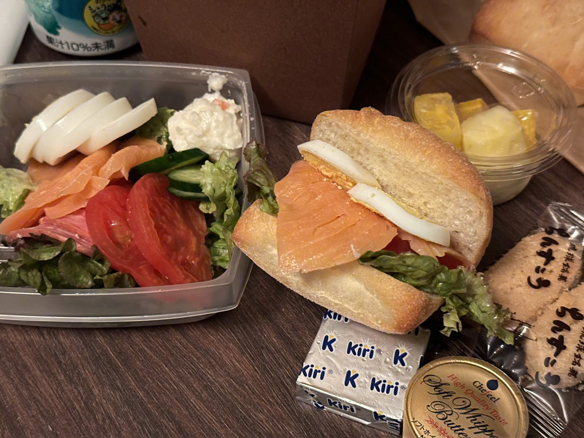 スタート前の朝食はサラダをサンドイッチにしたもの